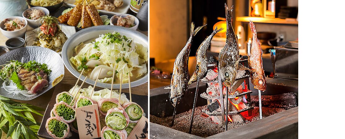 備長炭で焼き上げた野菜巻き串や焼き鳥が堪能できます!