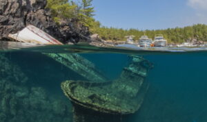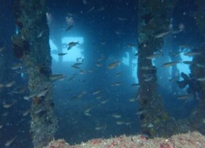 他の沈船スポットに比べてたらまだ浅瀬に沈んで